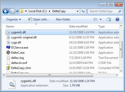 16. หากผู้ใช้ต้องการ backup ไฟล์ที่มีชื่อภาษาไทย ให้ทำการวางไฟล์ cygwin1.dll (ได้จากการแตกไฟล์ cygwin1.zip) ไว้ใน C:DeltaCopy