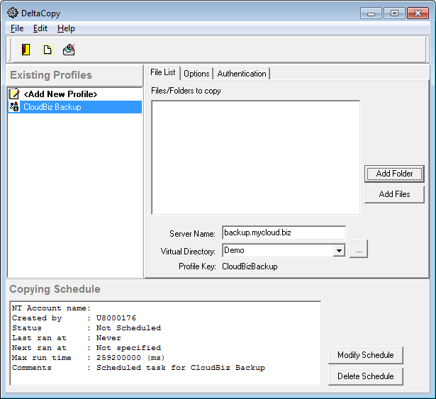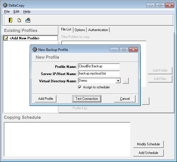 3. Start > All Programs > DeltaCopy > DeltaCopy Client