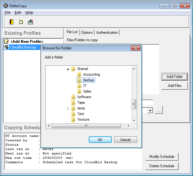 11. เลือก Folder ที่ต้องการ backup จากนั้นคลิ้กปุ่ม Add Folder